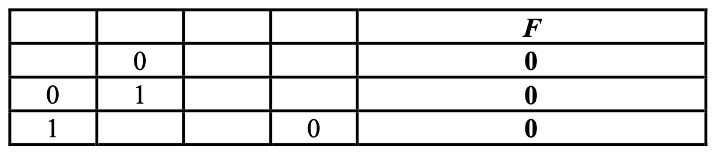 Пример. Функция F задана выражением ¬x \/ y, зависящим от двух переменных, а фрагмент таблицы имеет следующий вид.