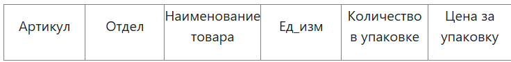 Таблица «Товар» содержит информацию об основных характеристиках каждого товара. Заголовок таблицы имеет следующий вид.
