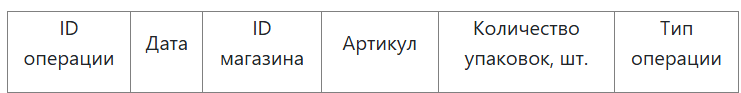 в магазин или было продано в течение дня. Заголовок таблицы имеет следующий вид.