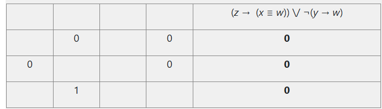 но успел заполнить лишь фрагмент из трёх различных её строк, даже не указав, какому столбцу таблицы соответствует каждая из переменных w, x, y, z.