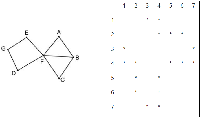 На рисунке слева изображена схема дорог Н-ского района, в таблице звёздочкой обозначено наличие дороги из одного населённого пункта в другой. Отсутствие звёздочки означает, что такой дороги нет.
