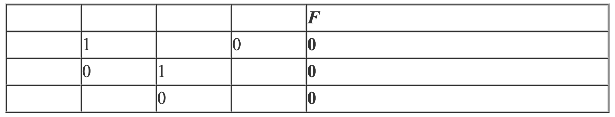 Пример. Функция F задана выражением ¬x \/ y, зависящим от двух переменных, а фрагмент таблицы имеет следующий вид.