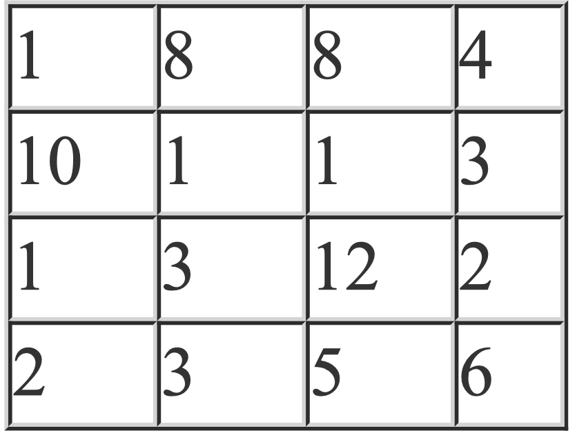 Перед запуском Робота в каждой клетке квадрата указан бонус, который Робот забирает после посещения клетки. Размер бонуса в каждой клетке – это натуральное число, не превышающее 100. Это правило относится к начальной и конечной клеткам маршрута Робота.