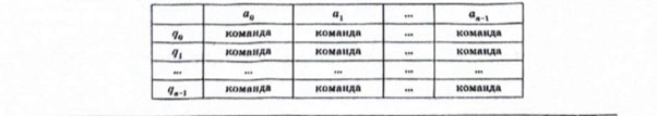 возможные состояния головки. На пересечении i-й строки и j-го столбца находится команда, которую выполняет МТ, когда головка обозревает
