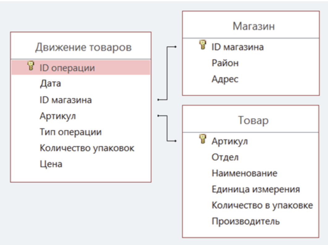 На рисунке приведена схема указанной базы данных.