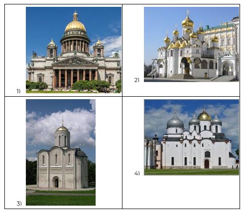 Какой из представленных ниже памятников архитектуры находится в городе, которому посвящена данная марка? В ответе запишите цифру, которой обозначен этот памятник архитектуры. Назовите князя, по указу которого создан этот памятник архитектуры.