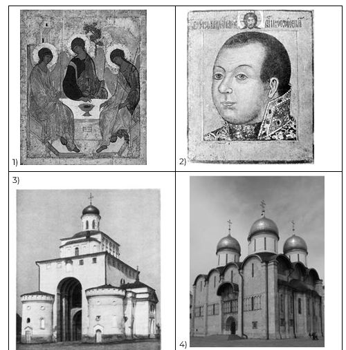 Какой из представленных ниже памятников культуры был создан современником события, юбилею которого посвящена данная монета? В ответе запишите цифру, которой обозначен этот памятник культуры. Укажите автора данного памятника культуры.
