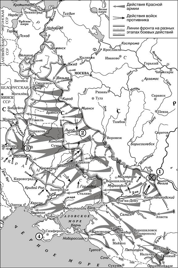 Укажите название месяца, когда был освобождён город, обозначенный на схеме цифрой «3».