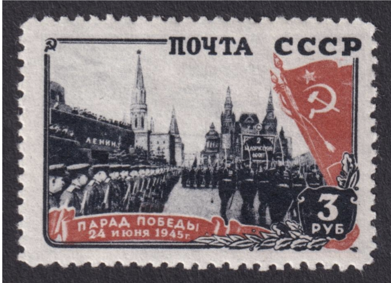 Рассмотрите изображение и выполните задание. Укажите фамилию военачальника, который командовал парадом, изображённым на марке.