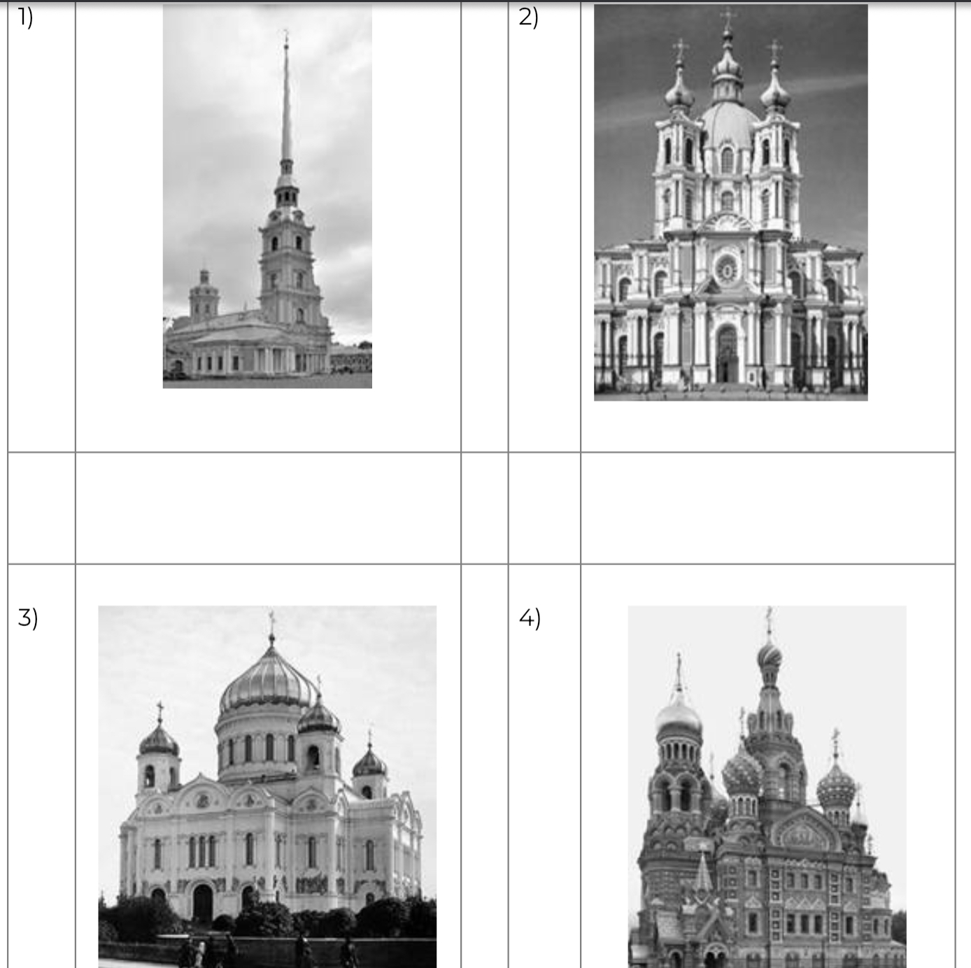 Какой из представленных ниже памятников архитектуры был создан по указу монарха, изображённого на почтовом блоке? В ответе запишите цифру, которой обозначен этот памятник архитектуры. Укажите архитектора, по проекту которого создан данный памятник архитектуры.