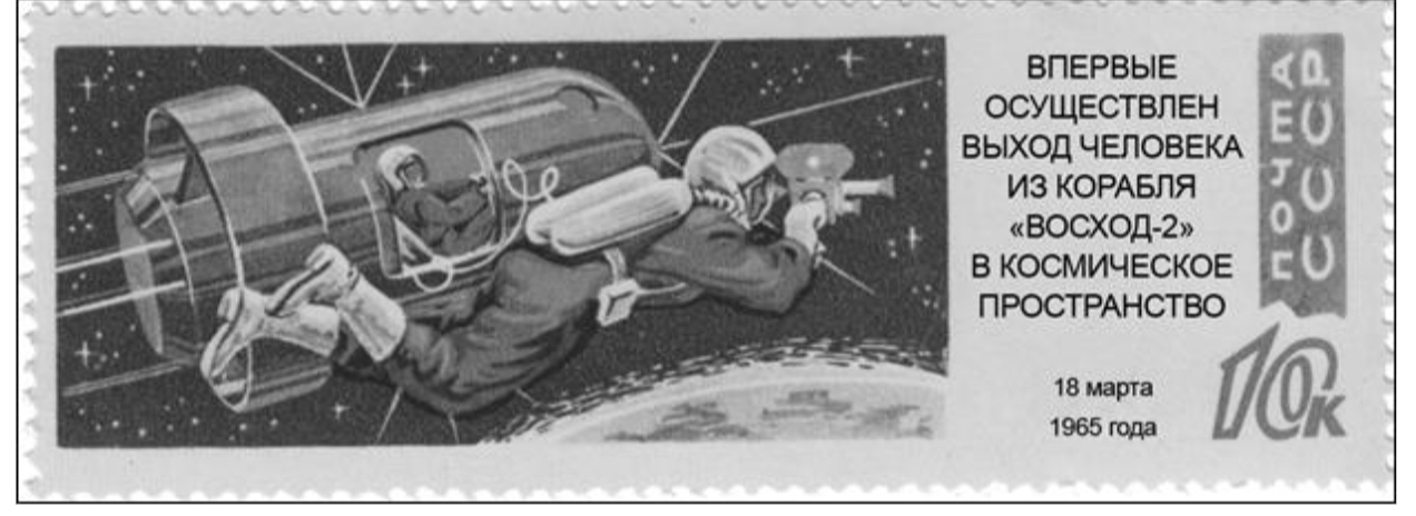 Укажите космонавта, изображённого на марке на переднем плане. Используя изображение, приведите одно любое обоснование Вашего ответа.