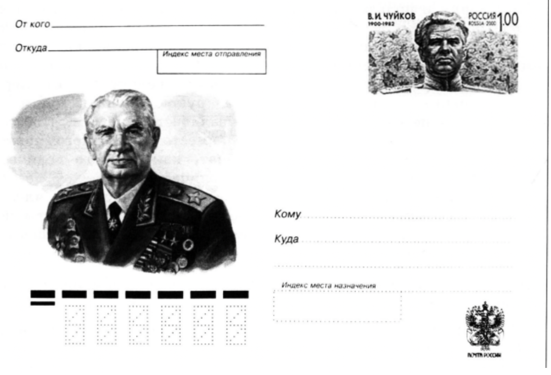 Заполните пропуск в предложении: «На конверте изображён исторический деятель, командовавший 62-й армией РККА, прославившейся своими действиями во время _________ битвы».