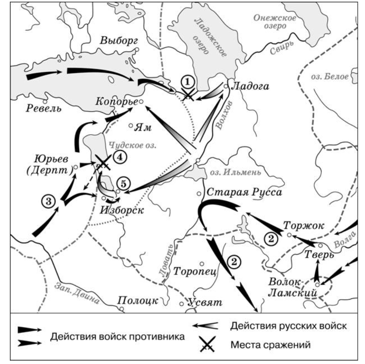 «Узнав о напасти с Запада, бояре из горрода на ______ призвали на помощь князя с его дружиной. Пришедший на подмогу князь двинулся от ________ в нескольких направлениях: по реке Волхов в сторону Ладоги, в сторону Копорья и в направлении к Изборску, - чтобы нанести противнику сокрушительный удар».
