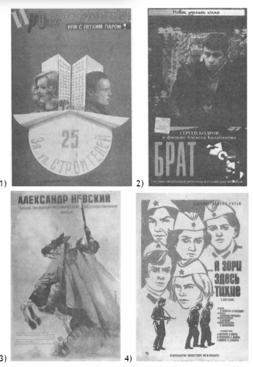 Какой из фильмов, афиши которых представлены ниже, был создан при том же руководителе СССР, при котором был выпущен данный плакат? В ответе запишите цифру, которой обозначена афиша этого фильма. Назовите режиссера, снявшего этот фильм.