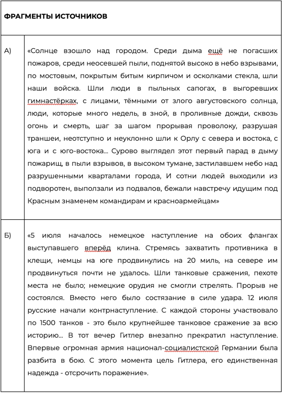 Укажите название битвы, о которой идёт речь в обоих представленных отрывках. Укажите название населенного пункта, в районе которого произошло крупнейшее танковое сражение, упоминаемое в одном из отрывков. В чём, согласно одному из отрывков, состояла цель Гитлера после упоминаемого в тексте сражения?