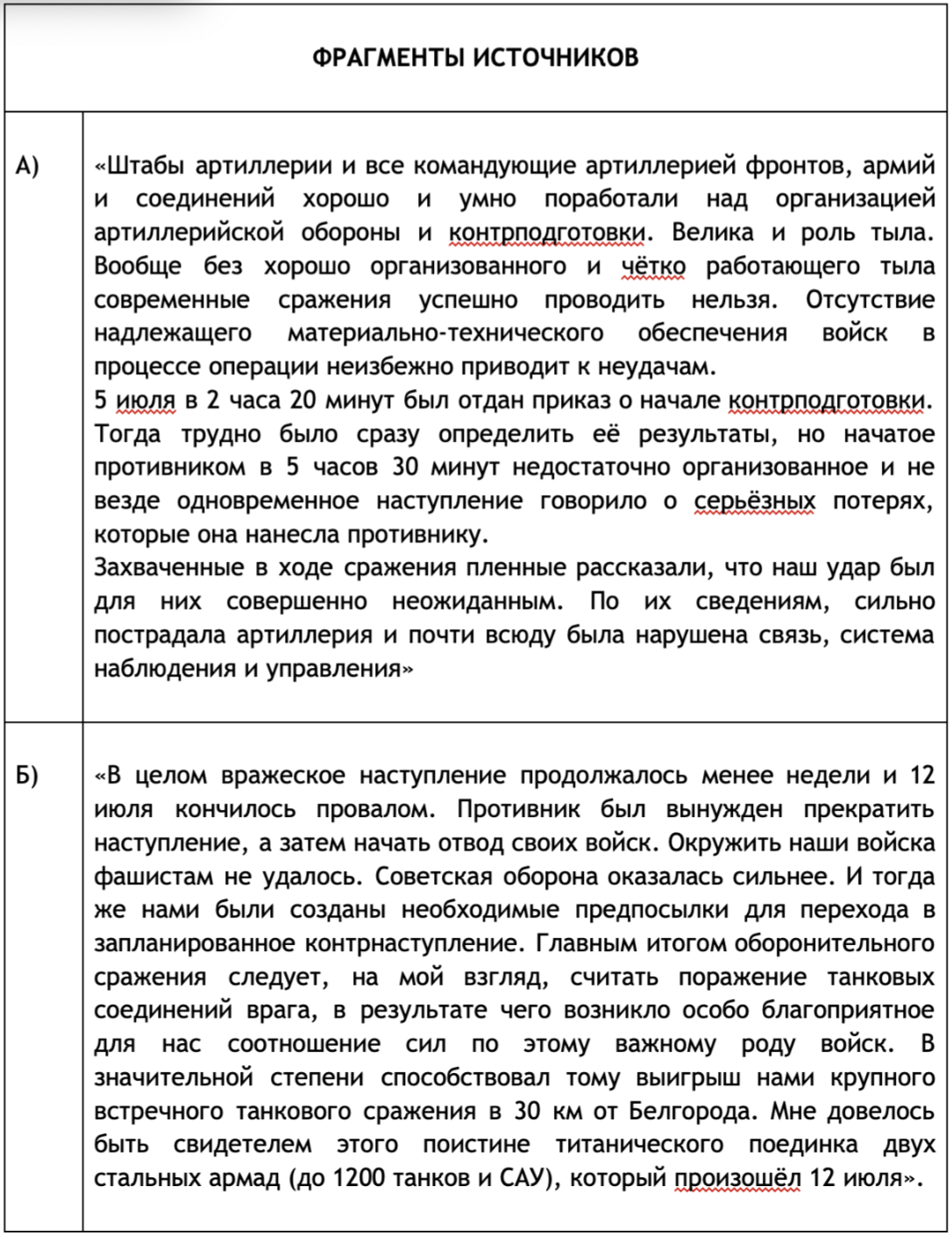 Укажите год, когда происходили события, о которых идёт речь в отрывках. Укажите название крупной операции, проведённой советскими партизанами на оккупированной территории для оказания помощи Красной армии, в ходе сражения, о событиях которого идёт речь в обоих отрывках. Что, по мнению автора одного из отрывков, способствует успешному проведению современных сражений?