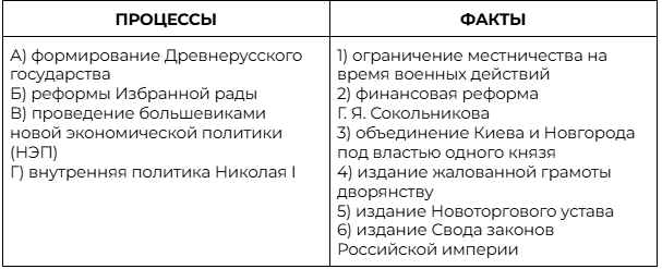 Установите соответствие между процессами (явлениями, событиями) и фактами, относящимися к этим процессам (явлениям, событиям): к каждой позиции первого столбца подберите соответствующую позицию из второго столбца.