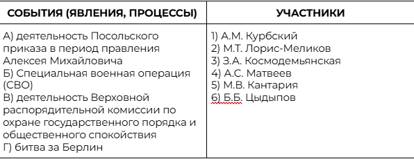 Установите соответствие между событиями (явлениями, процессами) и участниками этих событий (явлений, процессов): к каждой позиции первого столбца подберите соответствующую позицию из второго столбца.