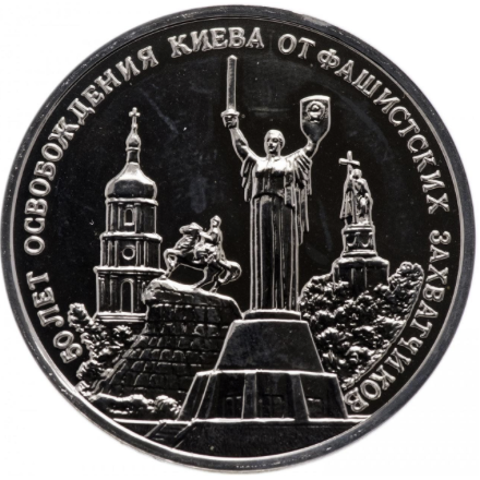 Рассмотрите изображение и выполните задание. Заполните пропуск в предложении: «Событие, в годовщину которого выпущена монета, произошло в тысяча девятьсот __________________ году». Ответ запишите словом (сочетанием слов).