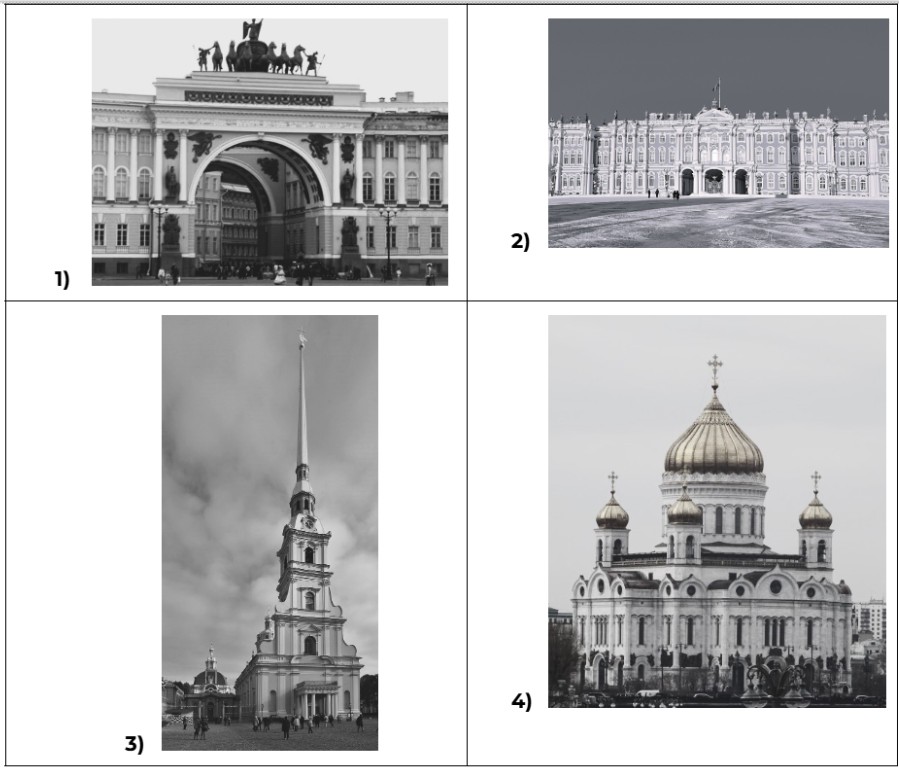 Какой из представленных ниже памятников архитектуры был создан по указу монарха, находившегося на российском престоле в год события, юбилею которого посвящена данная монета? В ответе запишите цифру, которой обозначен этот памятник архитектуры. Укажите архитектора, по проекту которого создан данный памятник архитектуры.