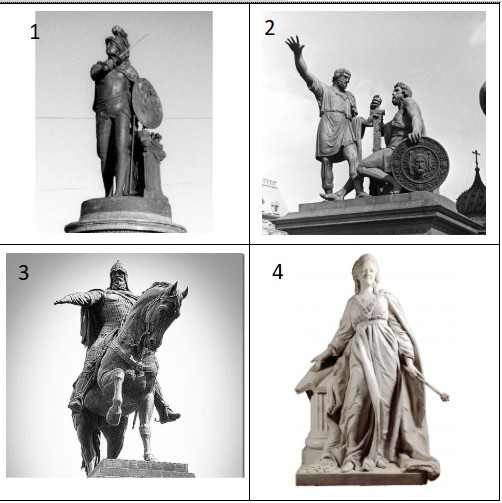 Какой из представленных ниже памятников скульптуры был создан в период правления императрицы, изображённой на медали? В ответе запишите цифру, которой обозначен этот памятник скульптуры. Укажите скульптора, создавшего данный памятник.