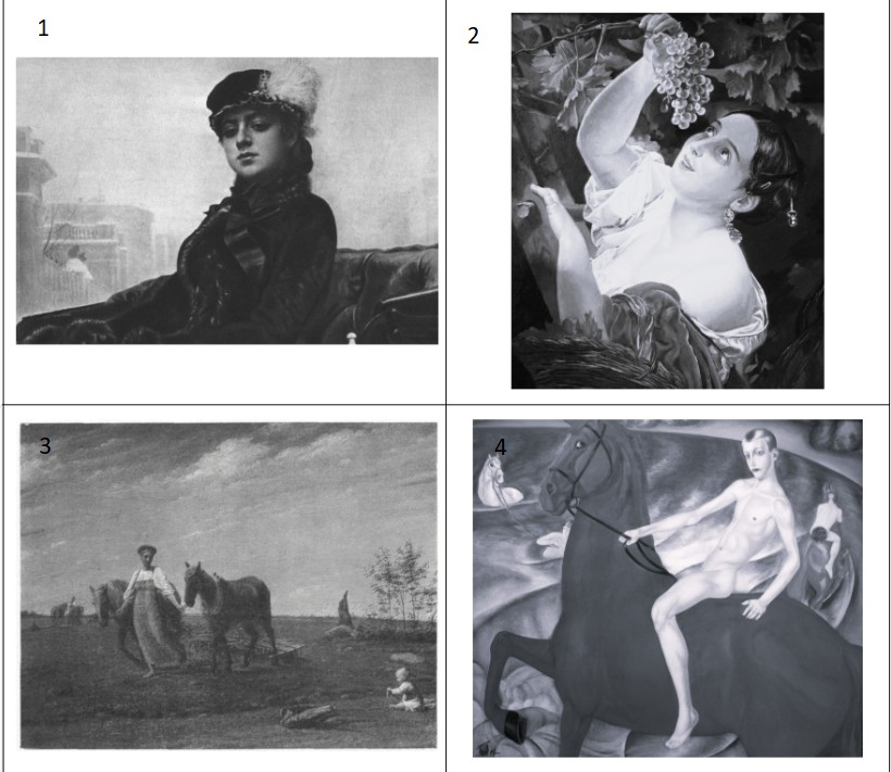 Какое из представленных ниже произведений живописи было создано в той же половине века, когда произошло событие, в память о котором выпущен почтовый блок? В ответе запишите цифру, которой обозначено это произведение живописи. Назовите художника, создавшего картину.
