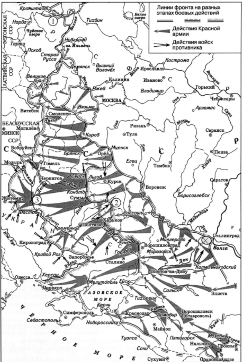 Заполните пропуск в предложении: «Боевые действия, обозначенные на схеме стрелками, начались в тысяча девятьсот _________ году». Ответ напишите сочетанием слов.