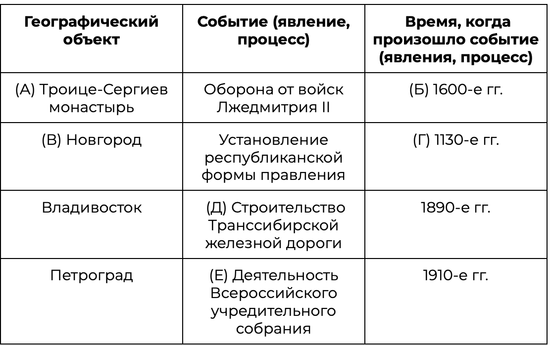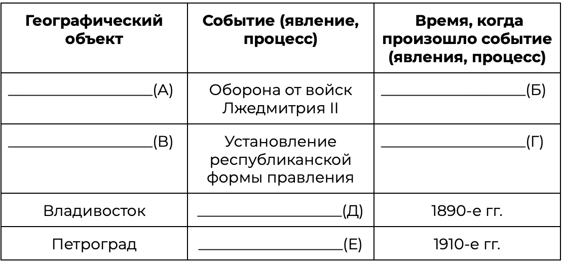 Заполните пустые ячейки таблицы, используя приведённый ниже список пропущенных элементов: для каждого пропуска, обозначенного буквой, выберите номер нужного элемента.