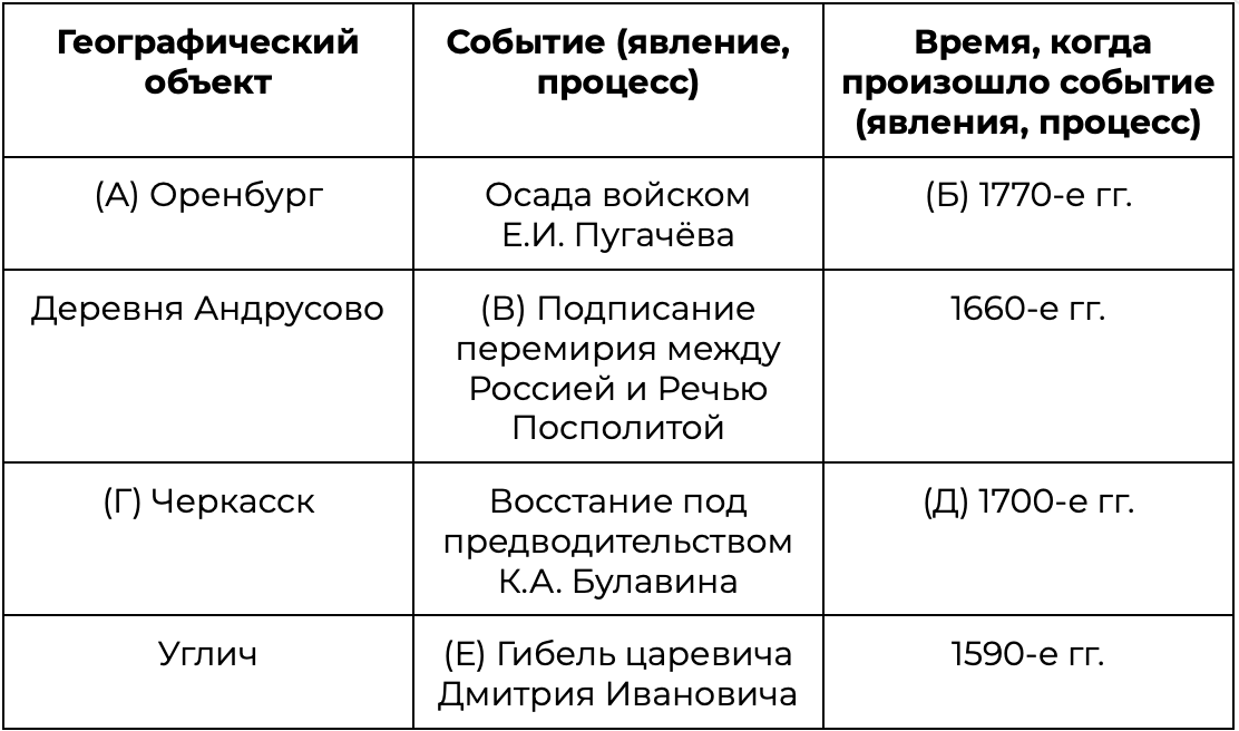 Заполните пустые ячейки таблицы, используя приведённый ниже список пропущенных элементов: для каждого пропуска, обозначенного буквой, выберите номер нужного элемента.