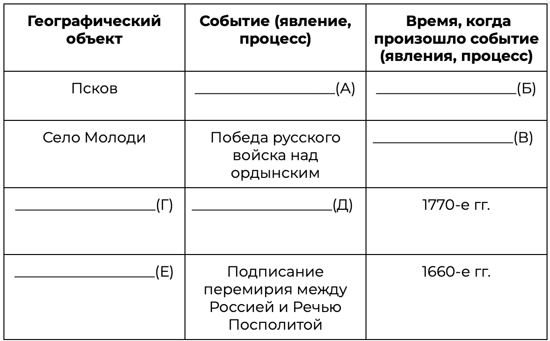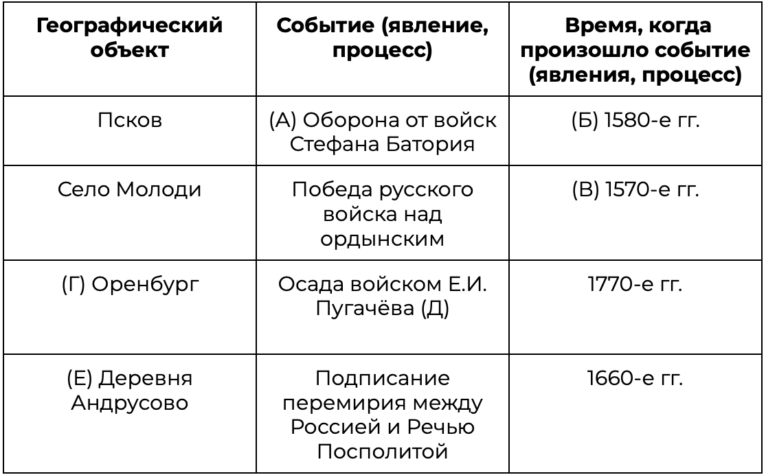 Заполните пустые ячейки таблицы, используя приведённый ниже список пропущенных элементов: для каждого пропуска, обозначенного буквой, выберите номер нужного элемента.