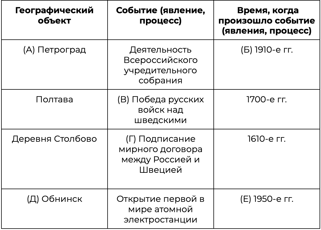 Заполните пустые ячейки таблицы, используя приведённый ниже список пропущенных элементов: для каждого пропуска, обозначенного буквой, выберите номер нужного элемента.
