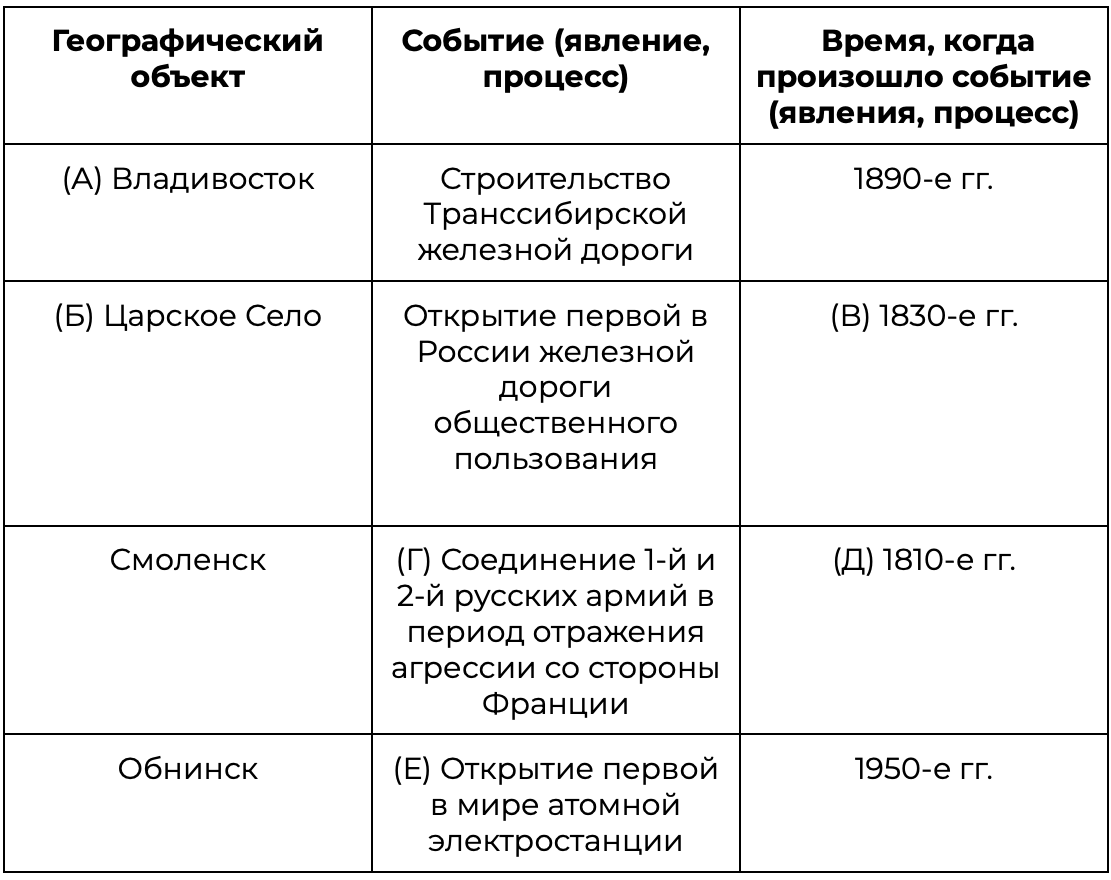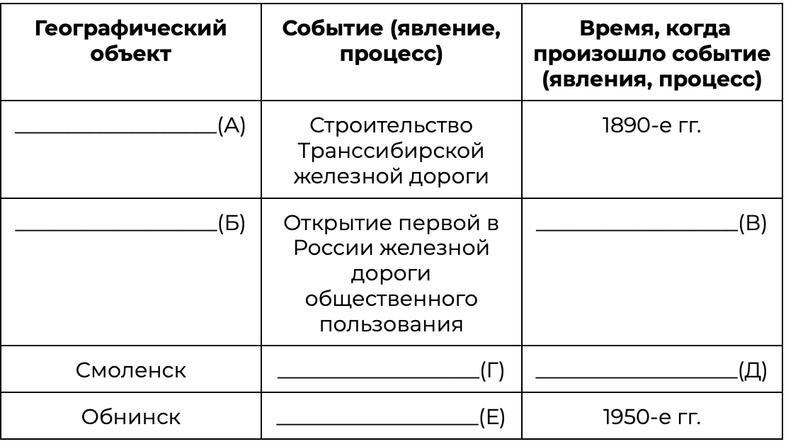 Заполните пустые ячейки таблицы, используя приведённый ниже список пропущенных элементов: для каждого пропуска, обозначенного буквой, выберите номер нужного элемента.