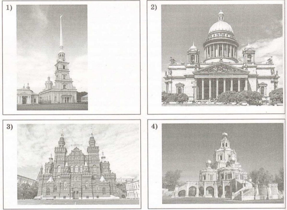 Какой из представленных ниже памятников архитектуры был создан в том же веке, когда произошло событие, юбилею которого посвящена данная памятная медаль? В ответе запишите цифру, которой обозначен этот памятник архитектуры. Укажите архитектурный стиль (направление), в котором создан этот памятник архитектуры.