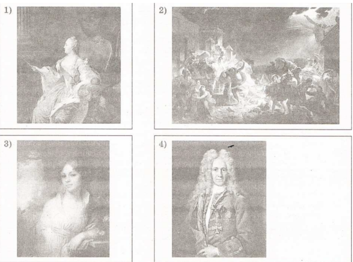 Какая из представленных ниже картин была написана в том же веке, когда произошло изображённое на марке событие? В ответе запишите цифру, которой обозначена эта картина. Укажите автора этой картины.