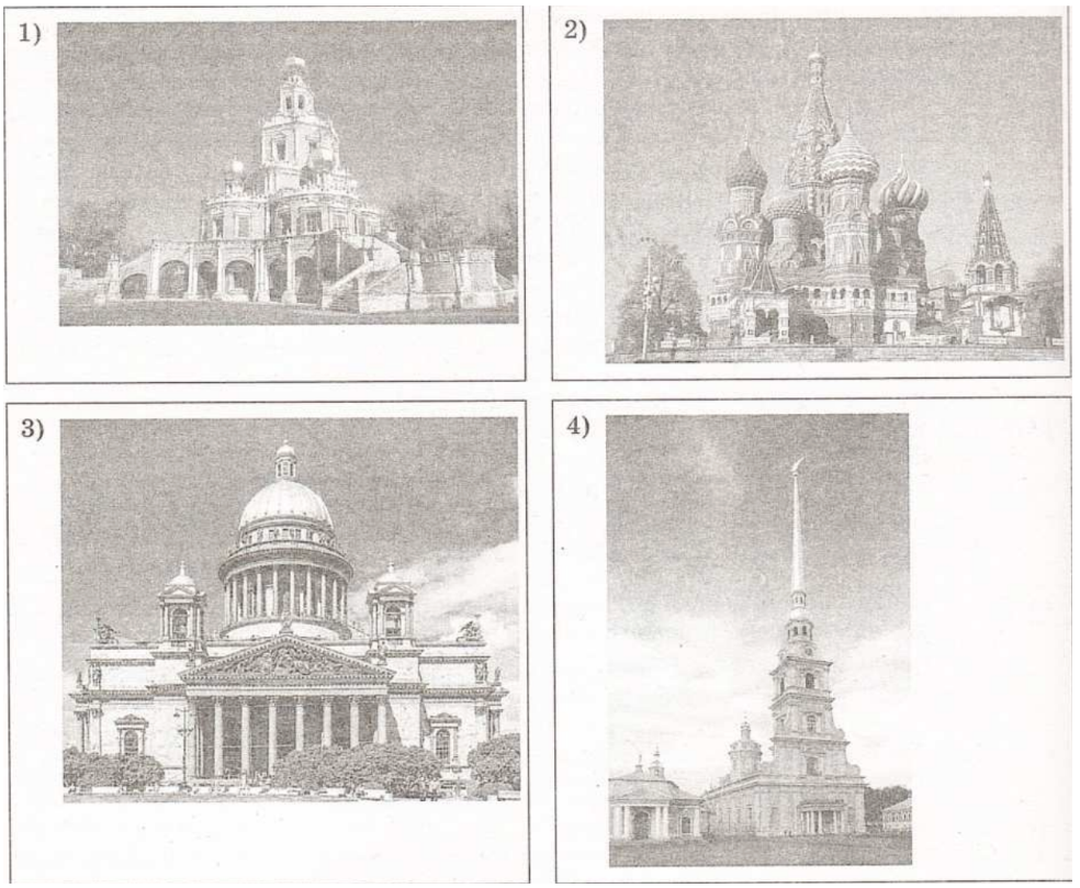 Какой из представленных памятников архитектуры был уже создан в период, когда произошло событие, которому посвящена данная памятная медаль? В ответе запишите цифру, которой обозначен этот памятник архитектуры. Назовите этот памятник архитектуры.