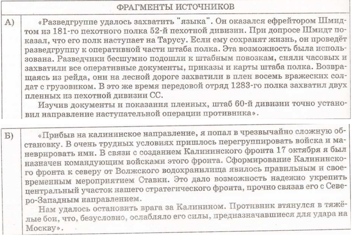 Укажите название битвы, о событиях которой идёт речь в обоих отрывках. Назовите автора воспоминаний, которые приведены в отрывке «Б». Что, согласно одному из отрывков, согласился сделать захваченный «язык» на условии сохранения ему жизни?