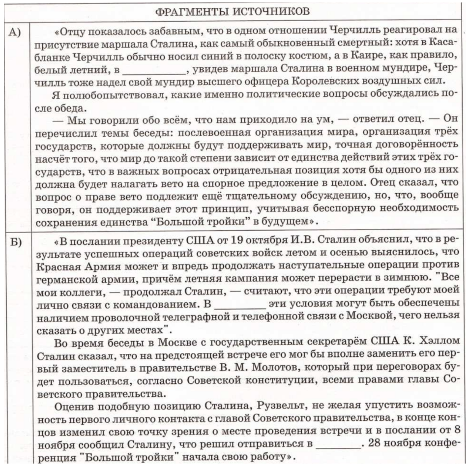 Укажите город, название которого пропущено в обоих отрывках. Укажите кодовое название одной любой крупной операции Красной армии, которая начала осуществляться в том же году, когда произошли описываемые в отрывках события. Почему, по словам автора одного из воспоминаний, участник описываемых событий поддерживал возможность наложения вето на спорное предложение в важных вопросах?