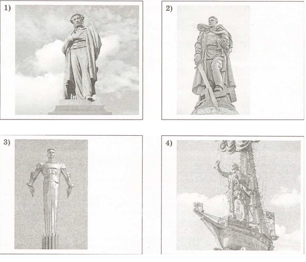 Какой из представленных ниже памятников скульптуры был создан при том же руководителе СССР, при котором отмечался юбилей, которому посвящена данная марка? В ответе запишите цифру, обозначающую этот памятник скульптуры. Укажите город, где он установлен.