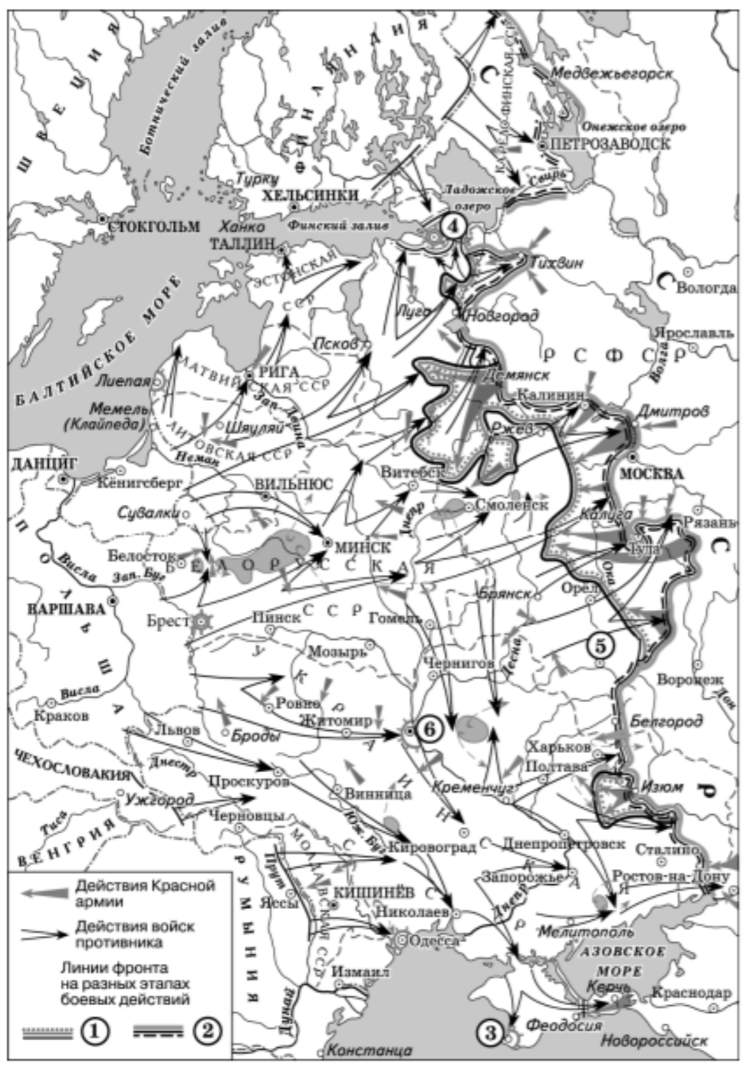 3) Линия фронта, обозначенная в легенде схемы цифрой «1», относится к 1942 г.