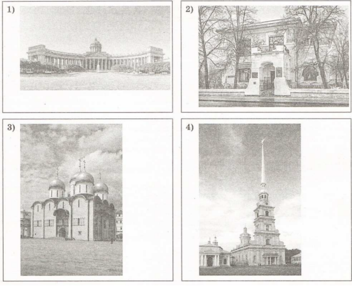 Какой из представленных ниже памятников архитектуры был создан в годы правления того же российского монарха, когда произошло событие, юбилею которого посвящена данная памятная монета? В ответе запишите цифру, которой обозначен этот памятник архитектуры. Укажите архитектора, создавшего данный памятник.