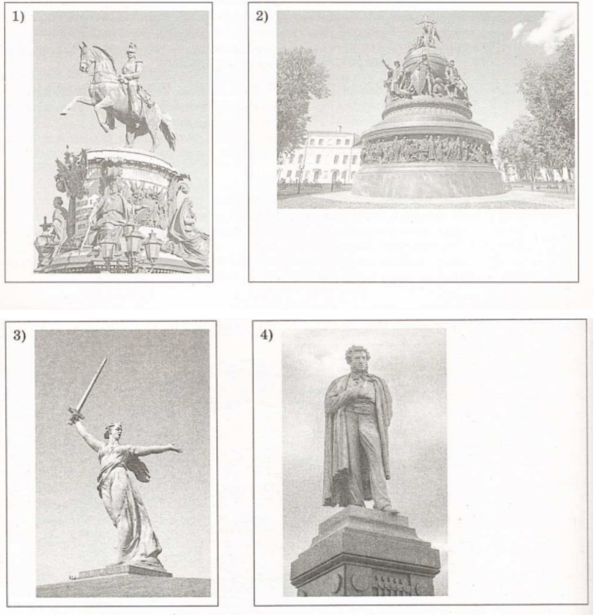 Какой из представленных ниже памятников скульптуры был установлен в том же десятилетии, когда произошло событие, юбилею которого посвящена данная монета? В ответе запишите цифру, которой обозначен этот памятник скульптуры. Укажите его автора.