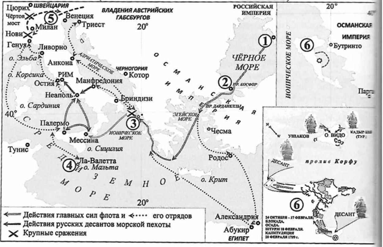 «[Сухопутная] дорога из [Манфредонии] была бы кратчайшая и удобнейшая к _____, ибо во всей Италии теперь с давнего времени не слышно никакой прибавки французских войск, а находится их весьма мало, считают в разделённых разных местах не более до девяти тысяч. Войска российские тотчас бы из Манфредонии перешли к ______, и к ним соединились бы войска наместника королевского кардинала Руффо… а я с соединёнными эскадрами поспешил бы туда же [морем]».