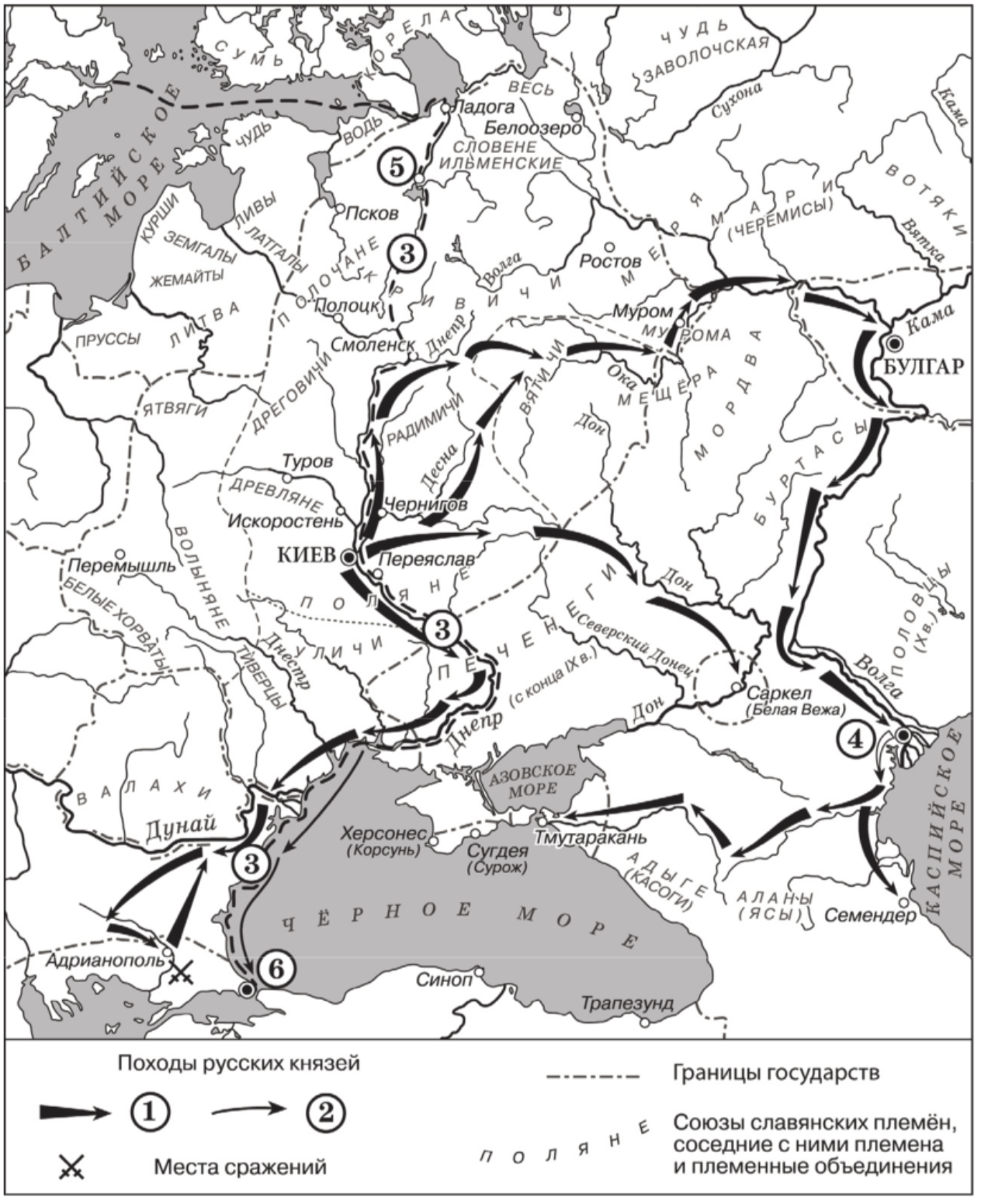 6. Киевский князь Олег совершил поход, обозначенный в легенде схемы цифрой 2.