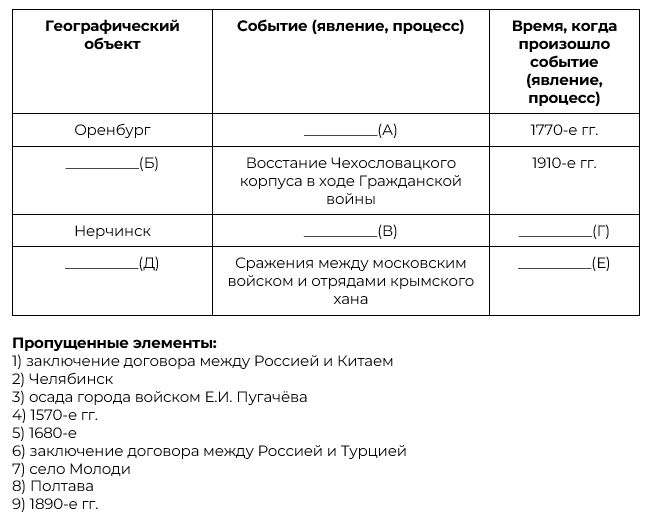 Заполните пустые ячейки таблицы, используя приведённый ниже список пропущенных элементов: для каждого пропуска, обозначенного буквой, выберите номер нужного элемента.