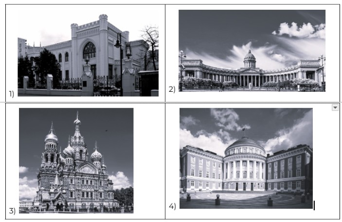 Строительство какого из представленных ниже памятников архитектуры было начато в период правления императора, изображённого на данной марке? В ответе запишите цифру, которой обозначен этот памятник архитектуры. Укажите событие, в память о котором возведён данный памятник архитектуры.