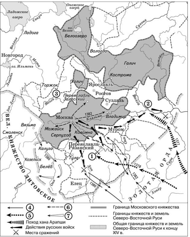Заполните пропуск в предложении: «Город, обозначенный на схеме цифрой "3", вошёл в состав Московского княжества во второй половине ___________ века». Ответ запишите словом.
