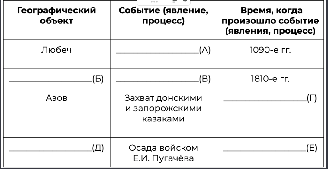 Заполните пустые ячейки таблицы, используя приведённый ниже список пропущенных элементов: для каждого пропуска, обозначенного буквой, выберите номер нужного элемента.