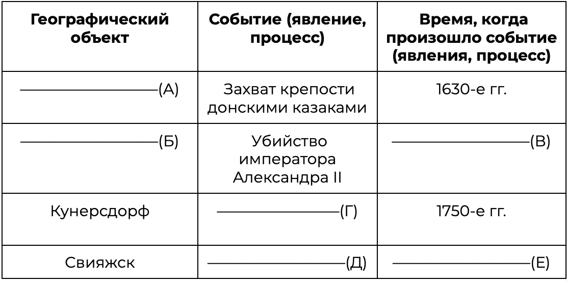 Установите соответствие между процессами (явлениями, событиями) и фактами, относящимися к этим процессам (явлениям, событиям): к каждой позиции первого столбца подберите соответствующую позицию из второго столбца.