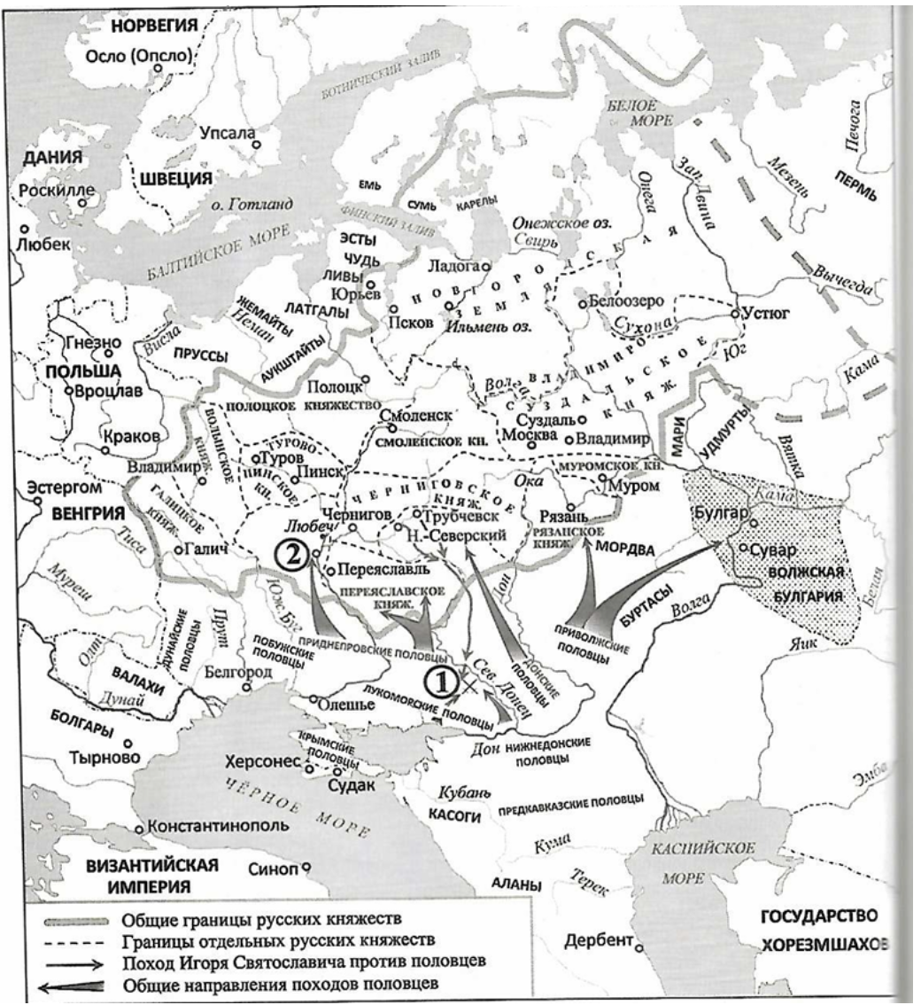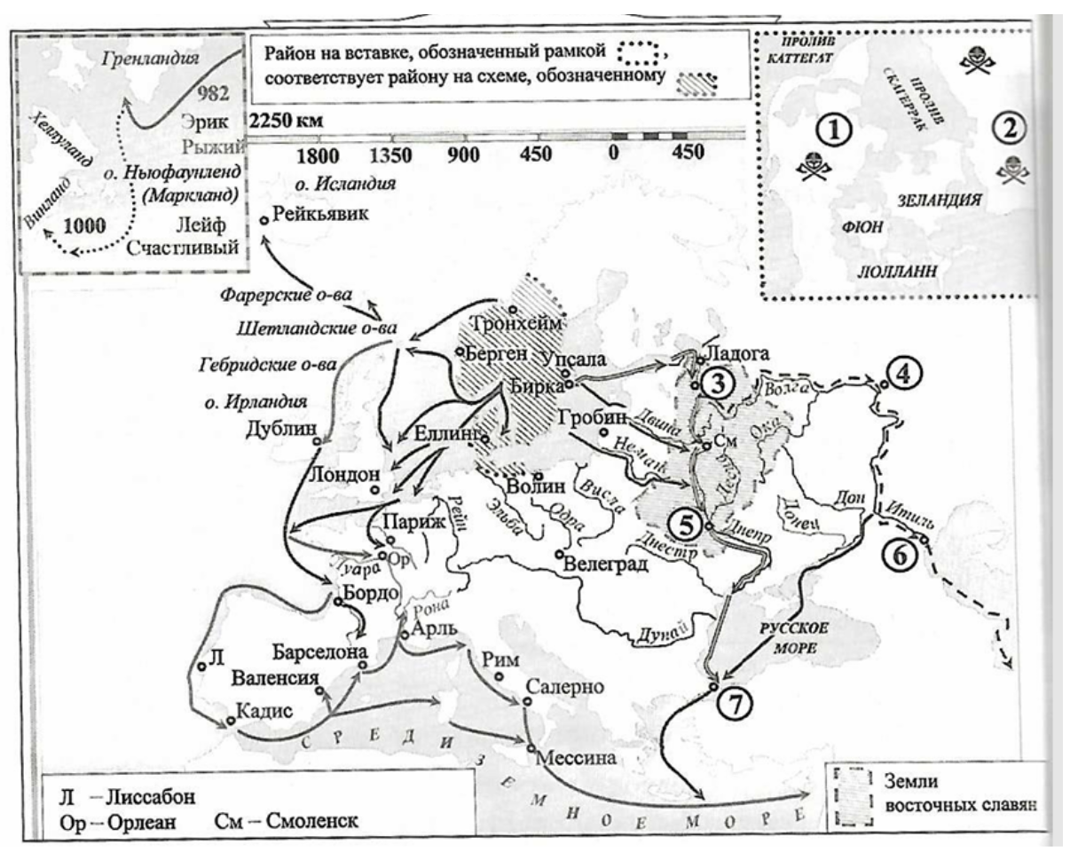 Укажите цифру, которой на схеме обозначен город, представители которого, как принято считать, в 862 г. пригласили к себе князем варяга по имени Рюрик.