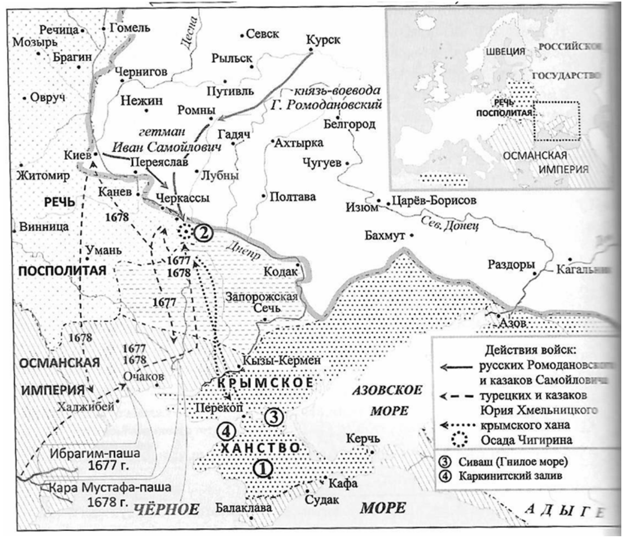 Укажите общее название отражённых на схеме боевых действий (походов) русских войск и союзных им казаков. Ответ запишите одним словом.